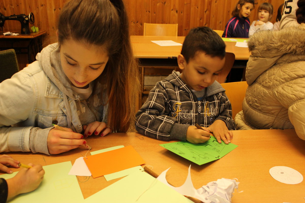 A tavalyi évben már segédkeztünk a MÁV-telepi iskolában, ahol idén egy rendezvény keretében kézműves foglalkozást tartottunk és közösen zenéltünk a gyerekekkel.