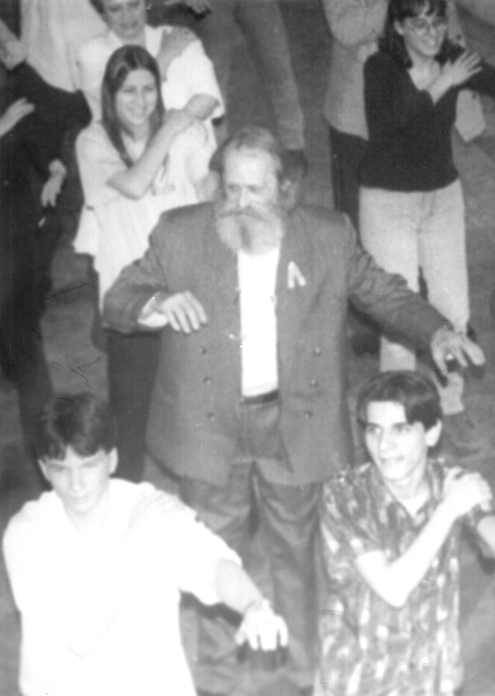 Jobbra: Pleplár Gábor patrónusként az 1994-98-as Föld Mars Jupiter Vénusz évfolyam 1998-as szalagavatóján