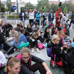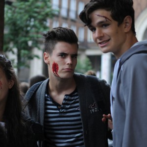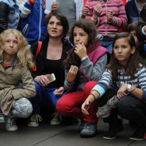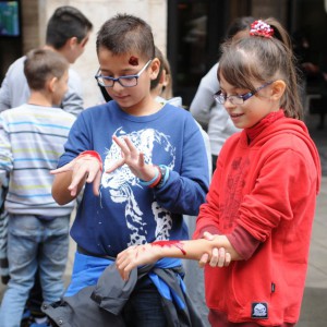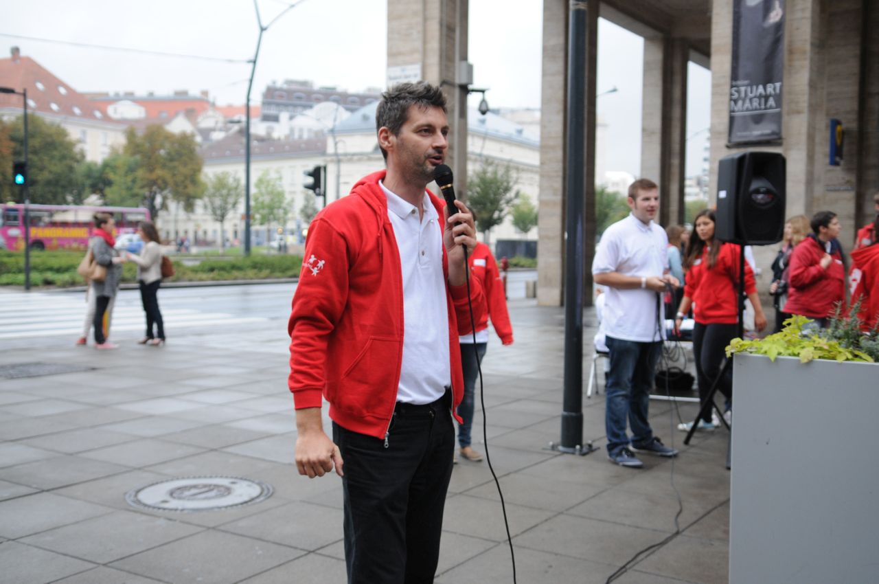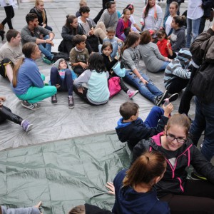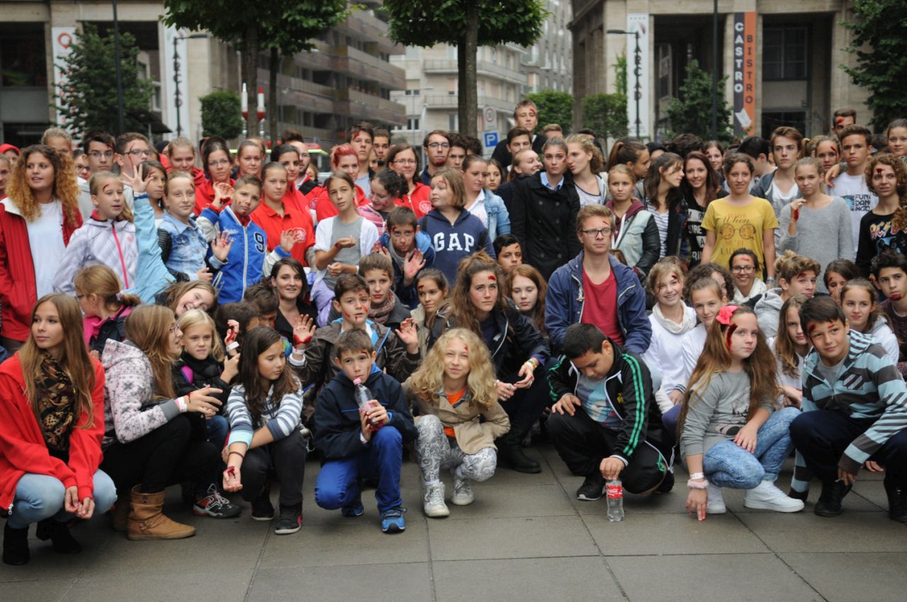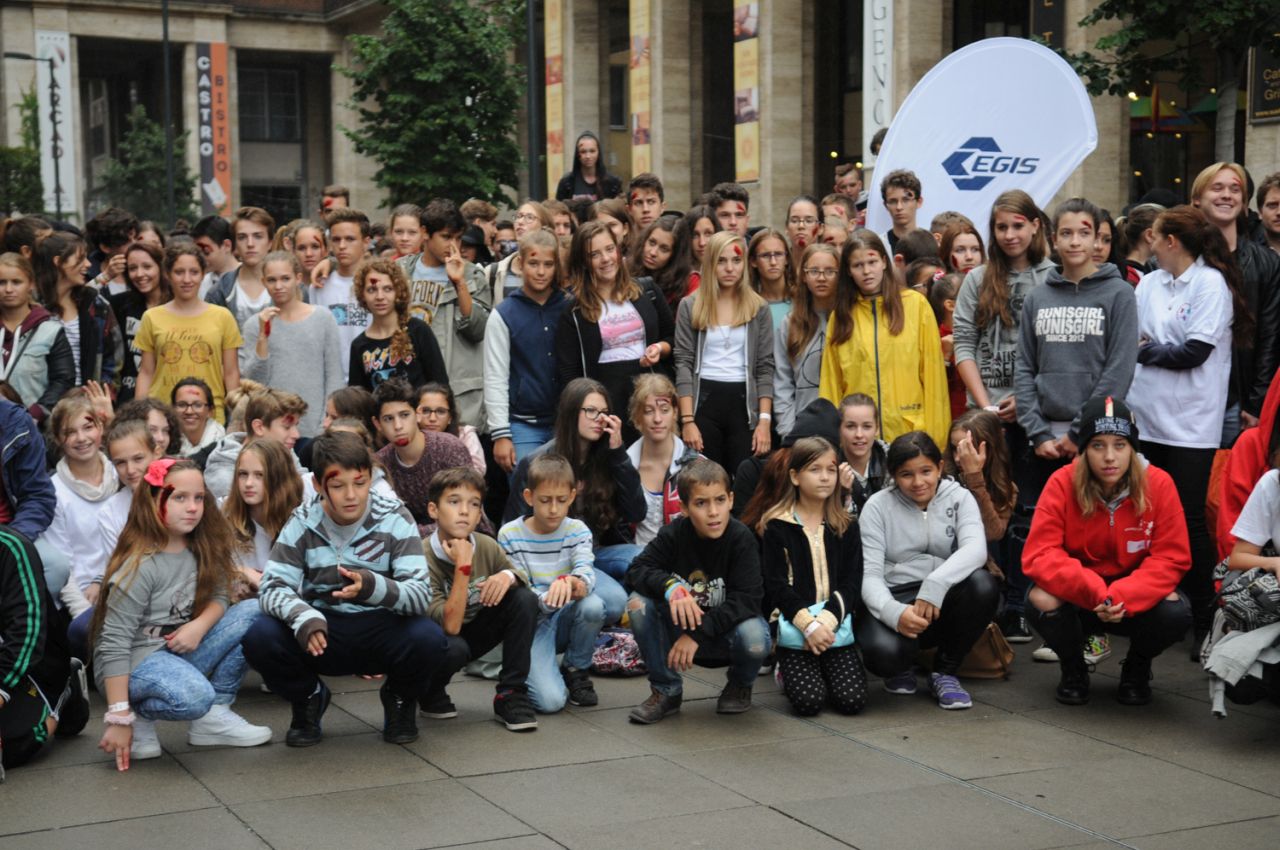 Baleset-szimulációs performance a Madách Imre téren, az Elsősegélynyújtás világnapja alkalmából.