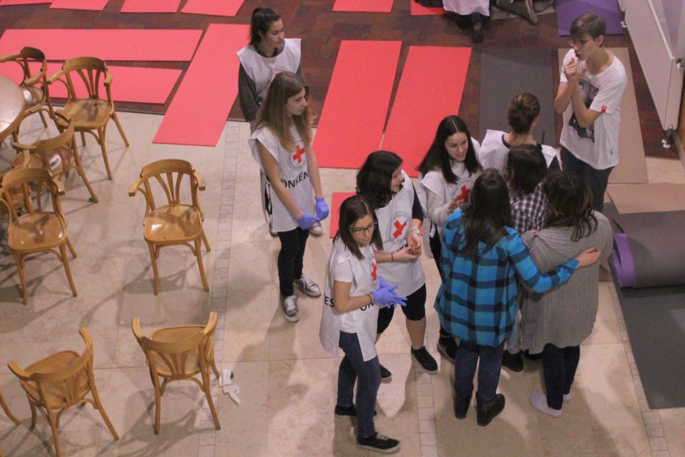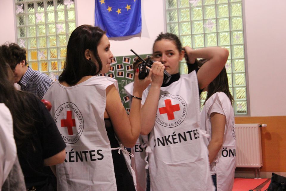 Két napos képzés keretében először a katasztrófák típusaival, majd a pszicho-szociális krízis kezelésével ismerkedhettek meg elsősegély szakköröseink. Az elmélet után interaktív, kiscsoportos gyakorlatok következtek, ahol elsajátíthatták a katasztrófa centrumokon belüli egyes tevékenységeket. Így a regisztráció, pszicho-szociális kríziskezelés, elsősegély, szálláshely kialakítás, kommunikáció és koordináció kritériumait. Az első nap rögtön egy éles gyakorlattal zárult, egy falu kitelepítését szimuláltuk, amely kiürítése egy vegyi baleset miatt vált indokolttá. A szombati nap az ismeretek mélyítésére épített, kiscsoportokban kellett különböző problémákat megoldani, majd szimulálni egy árvíz, illetve egy földrengés miatti kitelepítést.