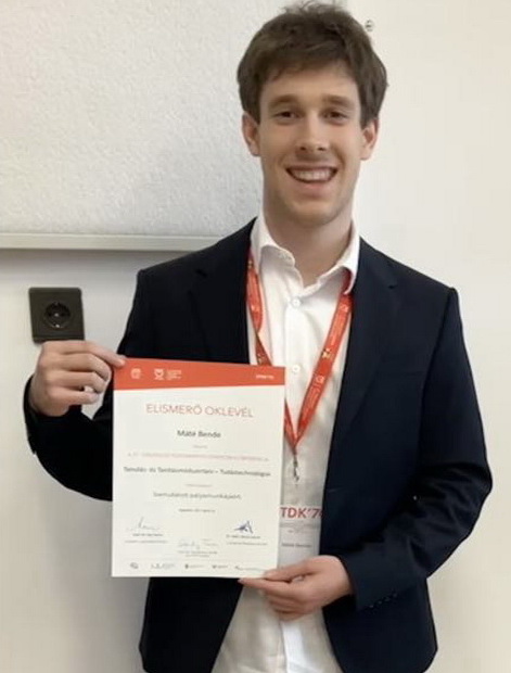 Máté Bende idén tavasszal az OTDK-n második helyezést ért el a tanulás-, tanításmódszertani – tudástechnológiai szekcióban.