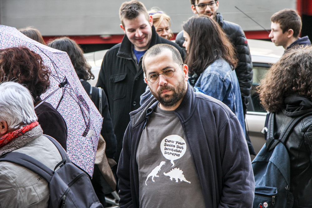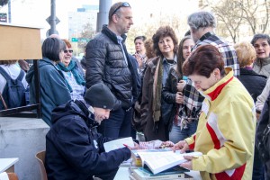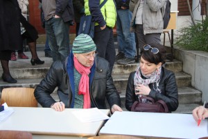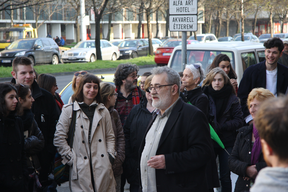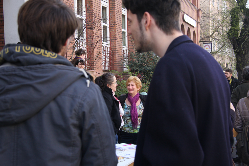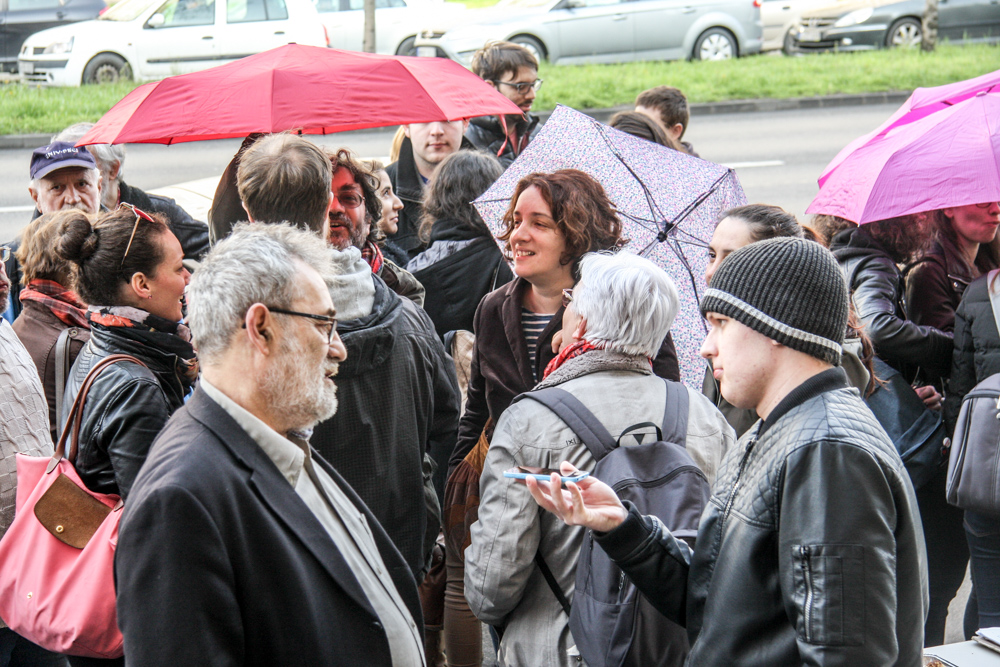 „Mi nem munkabeszüntetünk, hanem csak szolidaritunk. Nekünk nincs okunk a panaszra, de az oktatásnak igen. Ezért mi csak beszélgetünk, kedvesen mindenkivel, aki arra, jár.”