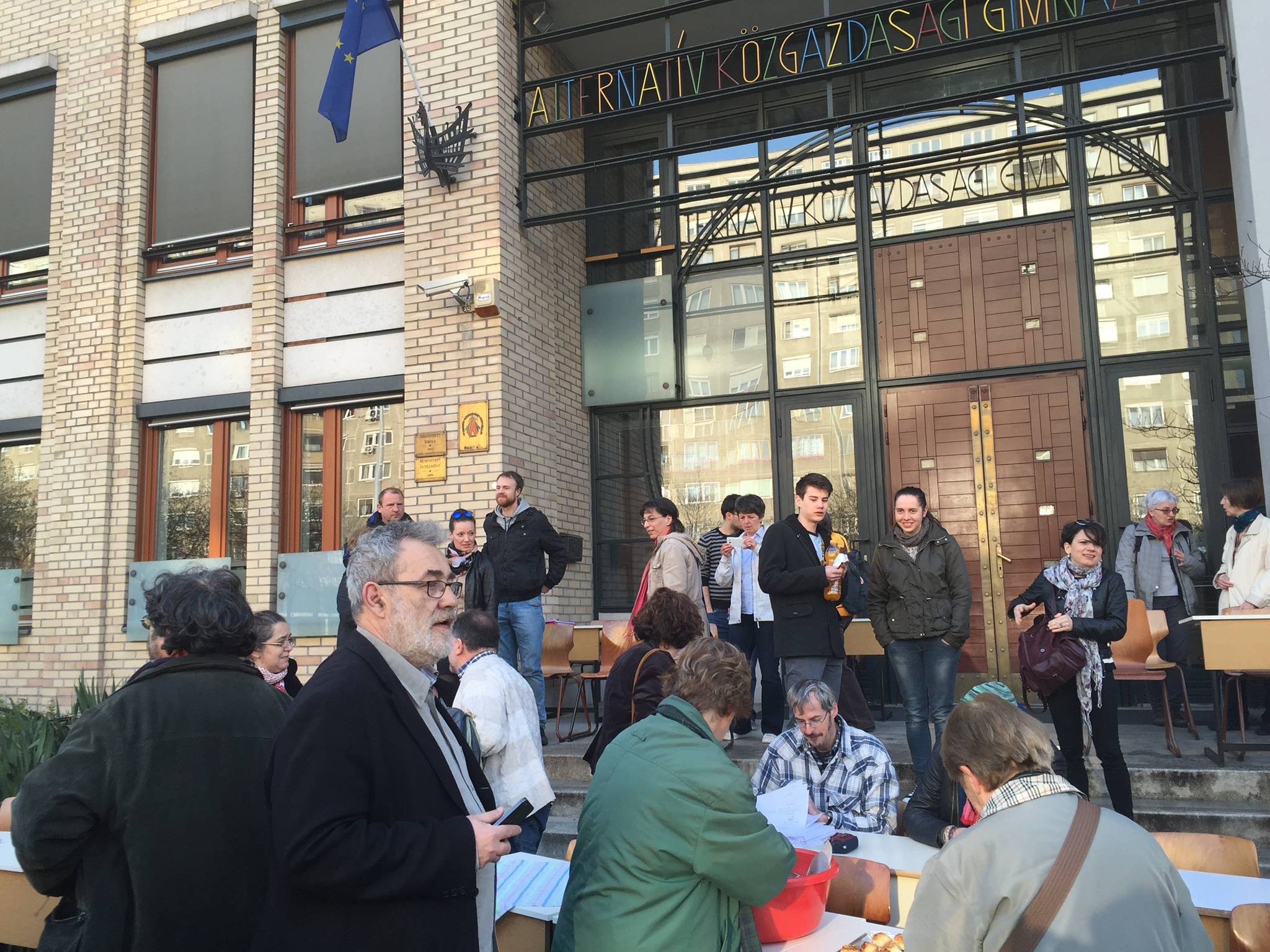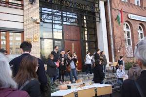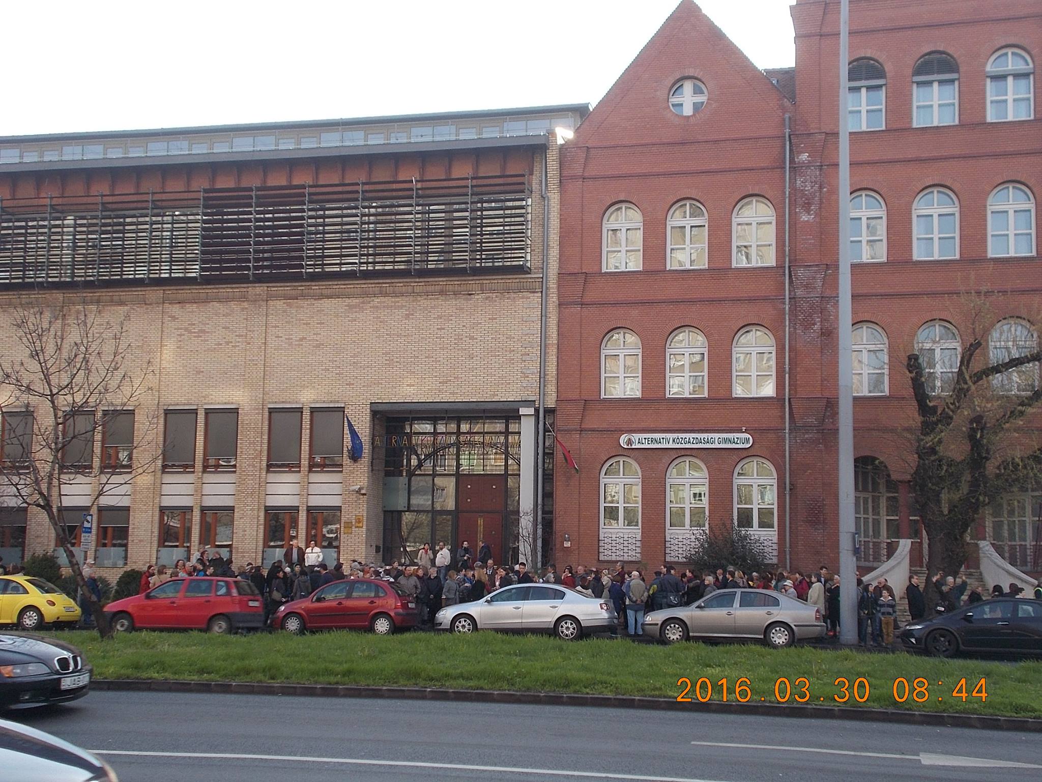 Az AKG-ban ez a nap a tavaszi szünet utolsó napja volt. Pár tanár szolidaritási „Szünetbeszüntetést” hirdetett az iskola elé.